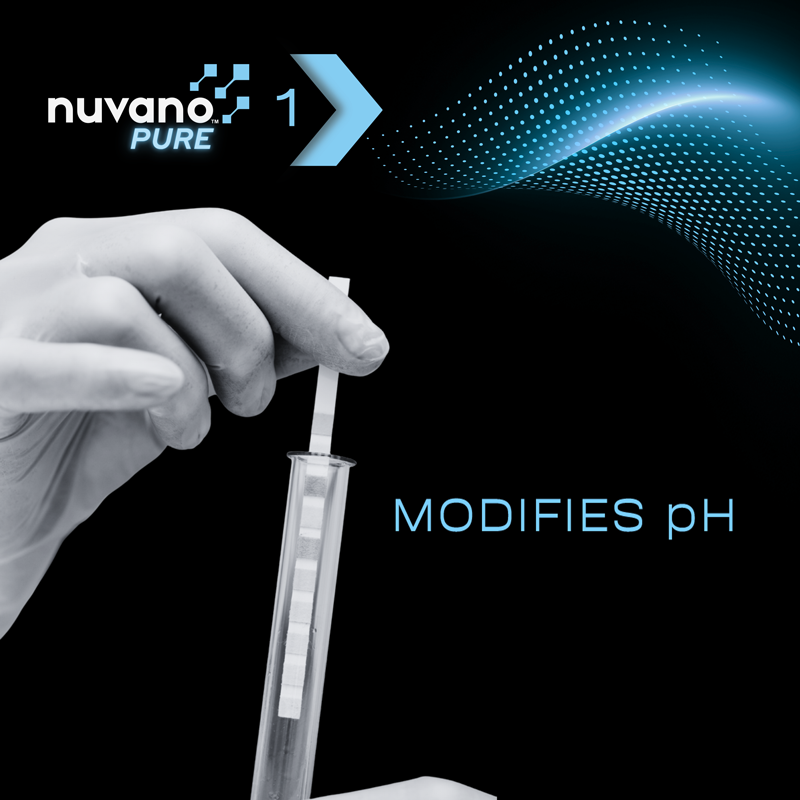 MODIFIES pH. Hard water sits at a pH of 6.5-8.5, while your crop inputs work most effectively at a pH of 4-6. One pint of Nuvano™ Pure per 100 gallons of hard water drops the pH by two points.