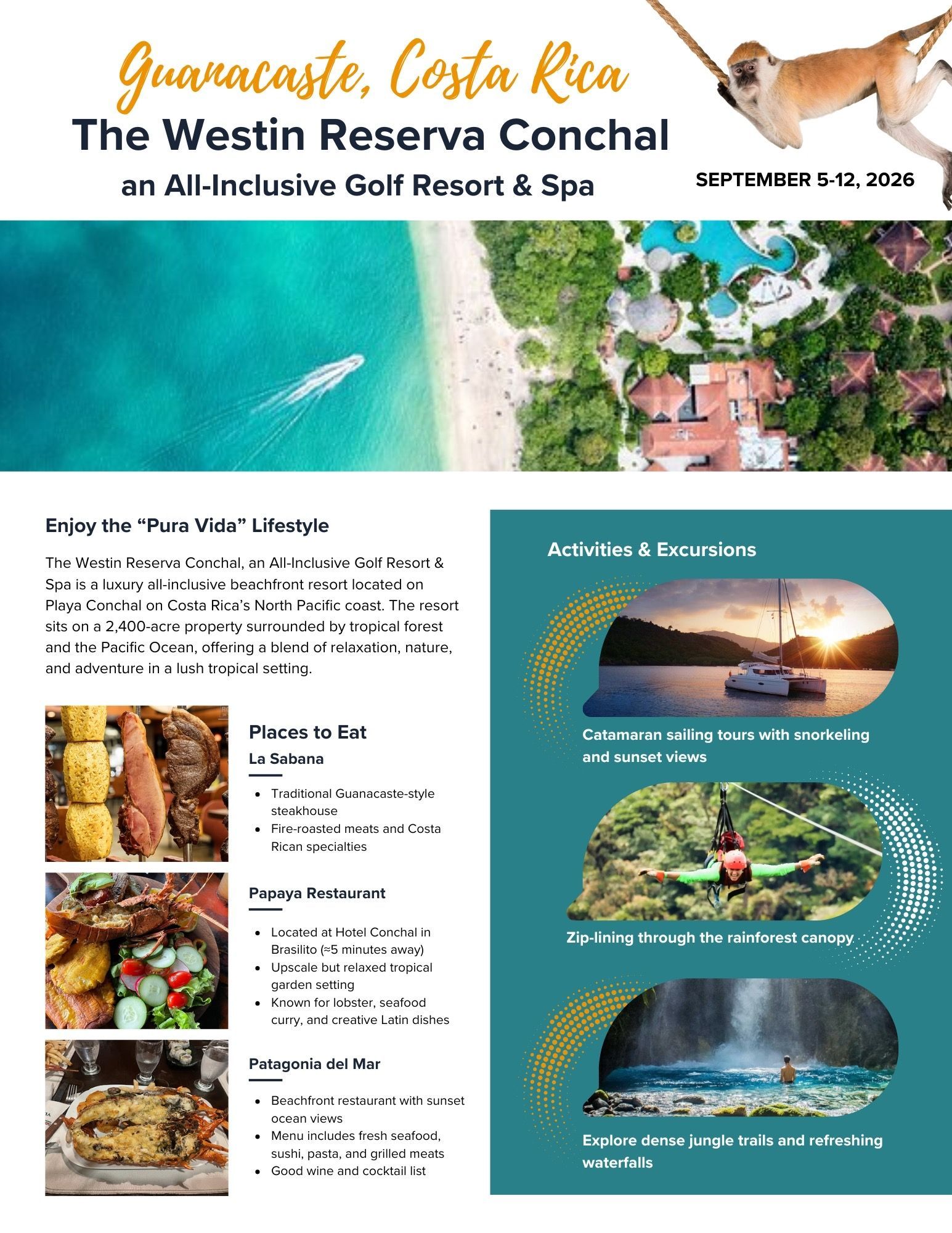 Nuvano invites you and your spouse to join us for an exclusive pre-harvest retreat at The Westin Reserva Conchal, from September 5–12, 2026.